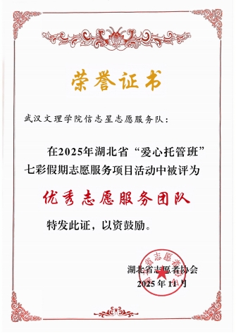 近日,共青团湖北省委公布2025年暑期“爱心托管班”志愿服务项目优秀团队名单,我院“信志星”志愿服务队获评“优秀团队”。