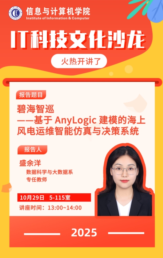 随后,盛老师以“如何通过技术创新破解运维痛点”为核心,介绍了本次讲座的核心主题“基于AnyLogic建模的海上风电运维智能仿真与决策系统”,并预告将从系统构建、科研实践、备赛指导、考研案例四个维度,带同学们深入了解海上风电运维的技术逻辑与应用场景。